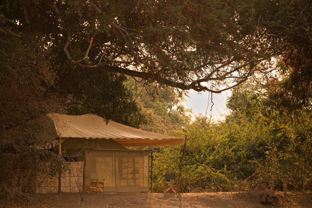Kutandala Camp is an owner-run bush camp opened in 2025, with five en suite guest tents set in riverine forest along the Mwaleshi River in the heart of North Luangwa. Activities include both game drives and walking safaris. Access is via light aircraft from Mfuwe to Lubonga airstrip.