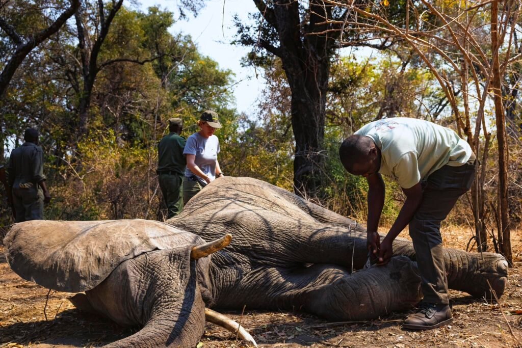 In 2020, we partnered with Conservation Lower Zambezi. At the height of the pandemic, they reported finding elephant carcasses with tusks intact. Partners also recorded an increase in the snaring and killing of wildlife, including elephants, driven by food insecurity and the collapse of ecotourism.