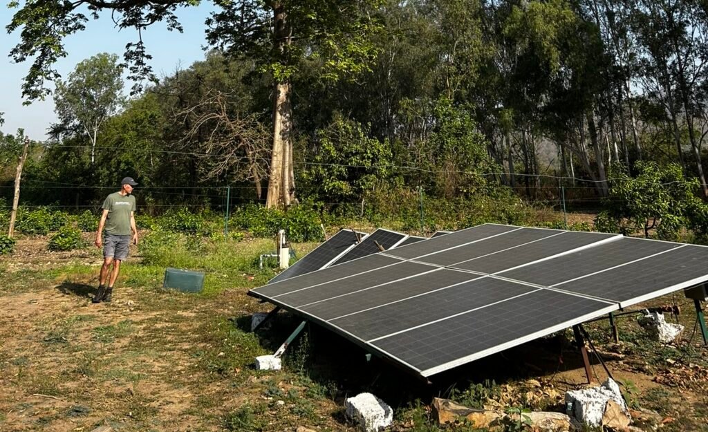 Rob checking the solar powered pump for a waterhole in Amangarh, India (2025)
