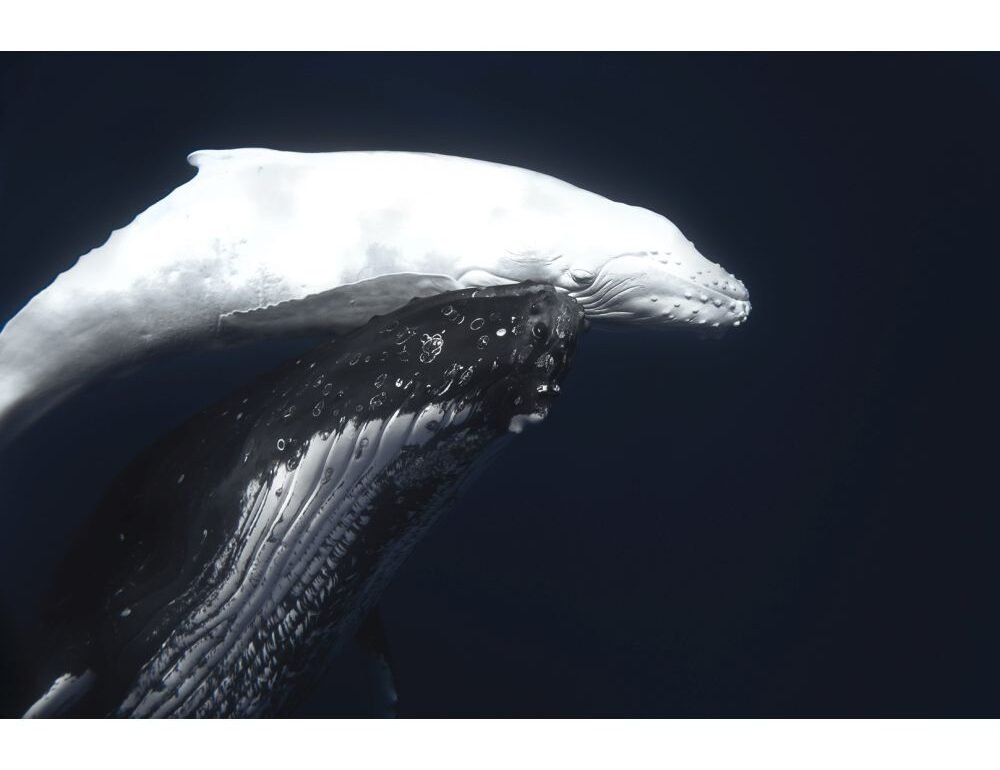 "Captured in the tropical waters of Vava'u Tonga in 2024, this incredibly rare white humpback Māhina is the first pure white humpback whale observed in Tonga in recorded history. Māhina, meaning moon in Tongan, was the name given to this calf due to her luminescent appearance underwater which is as rare as it is breathtaking, as wherever she moves she illuminates the water into a bright electric blue. Only an estimated 1 in 40,000 humpbacks have this striking lack of pigmentation causing bright white skin which seems to glow underwater in contrast with deep ocean blues. Watching this spectacular and curious moon white whale calf play and roll through the water represents the remarkable success story of a species given the chance to recover after being heavily targeted by whaling and once being brought to the brink of extinction. Considering the resilience of this awe-inspiring species, sightings of such rare individuals renews hope in what can happen when conservation is championed and wildlife is allowed to thrive."