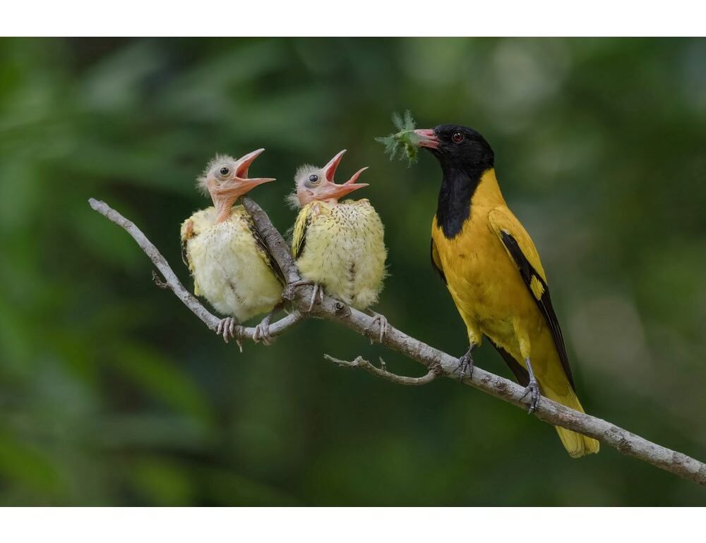 "I loved this intimate moment in the life of the oriole family. Excellent composition and the shallow depth of field used made the chicks and parent stand out from the foliage in the background, so it was well executed. It also made me smile!" Sue Flood