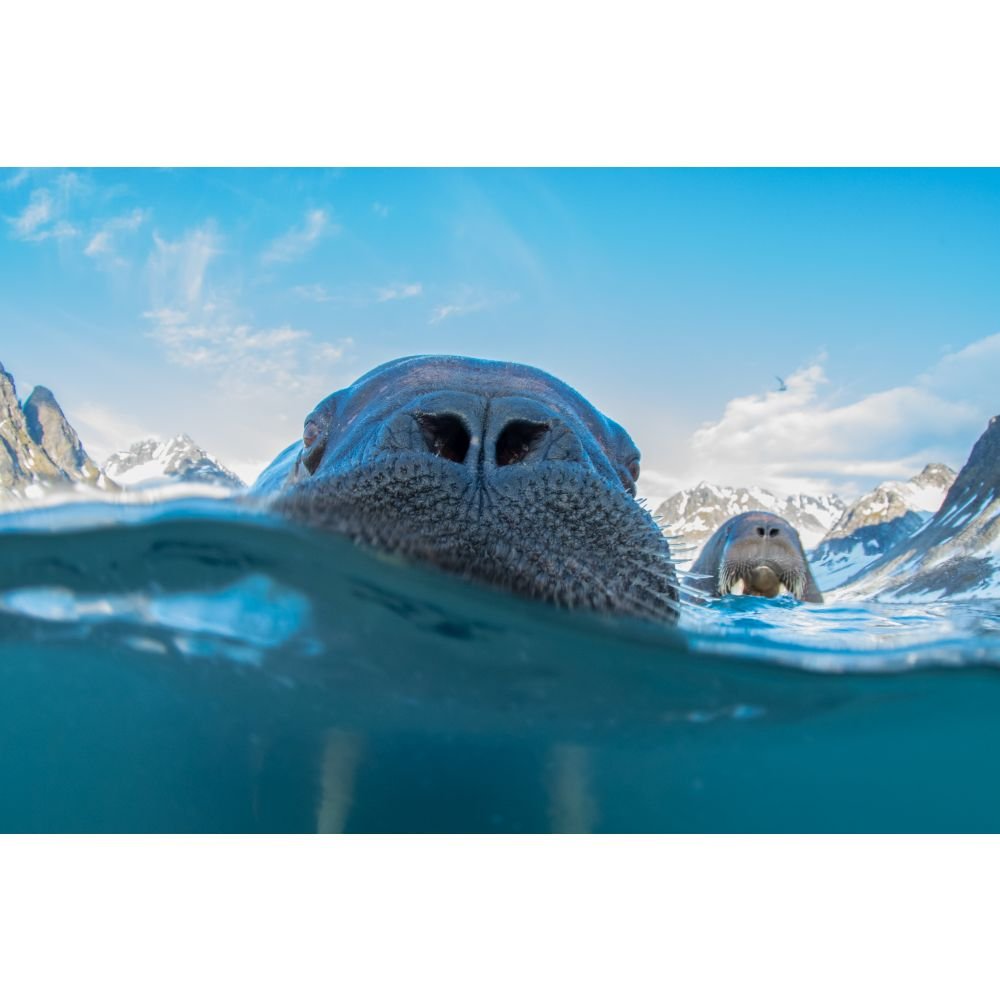 "The Atlantic walruses swimming in the light of the midnight sun of Svalbard were so beautiful to watch. At one point, a couple of curious ones decided to swim toward me and I was able to capture this magical moment. The walrus population was once decimated by hunting but has rebounded. However, climate change makes their future uncertain. Atlantic walruses are listed as Near Threatened on the IUCN Red List. I hope this image inspires people to care about this beautiful species and the majestic environment that they live in. This image was taken with a pole-cam."